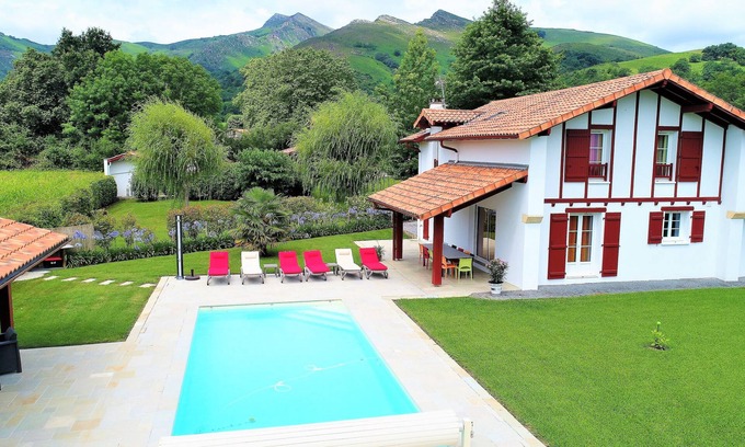 HOUSE WITH HEATED POOL, IN ONE OF THE MOST BEAUTIFUL VILLAGES IN FRANCE is located in Sare. HOUSE WITH HEATED POOL, IN ONE OF THE MOST BEAUTIFUL VILLAGES IN FRANCE provides accommodation, featuring Child Friendly, Pool, TV, among other amenities. This House features Child Friendly, Pool, TV, to make your stay a comfortable one.