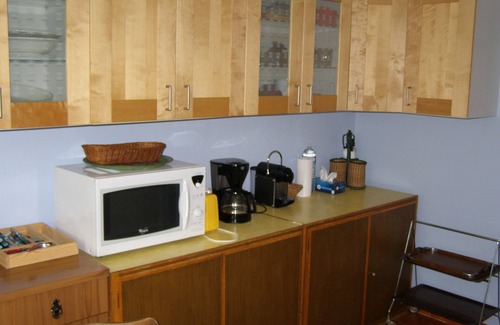 On the ground floor: Large living - dining room, kitchen (fridge-freezer, washing machine and dishwasher, stove, microwave), 2 bedrooms (1 double bed - 2 singles), 1 office with sofa bed, 1 bathroom (shower), separate toilet.