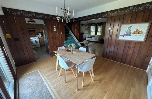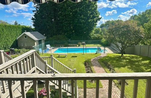 Our rental is in the heart of Mayville, NY, just a 5 minute walk to shopping or another 10 minutes down to Chautauqua Lake. We are 2.5 miles from the famous Chautauqua Institution! The house is perched on a hill with beautiful views, has a pool that is available during the summer season, a large, covered deck, and offers plenty of parking. We have a motorized, seated handicap ramp on the steps leading upstairs to the bedrooms and bathroom. As your host, I also own a popular local restaurant less than a mile from the house so I guarantee you'll have fabulous food options available! The pool closes mid September and will reopen Memorial Day weekend.