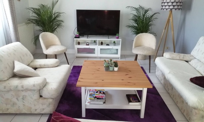 single storey house surrounded by a large secure garden with a high tech pergola for the summer; leave your car on site, the photos showing your large privatized space, ie 90 m2.