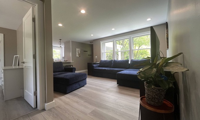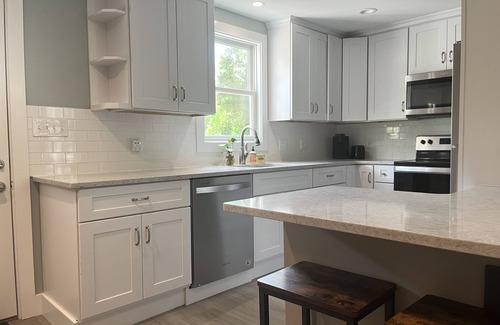 The beautiful gray house with spacious front porch entrance will be your charming place to stay, this home getaway offers 3 cozy bedroom accommodation and 2 full bathrooms. The accessible ramp makes it inclusive for everyone in your party and you will have a private driveway with plenty space for your vehicles. Back patio outfitted with charcoal grill, table, and umbrella.