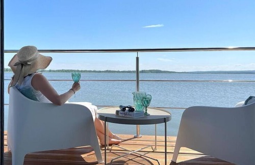 Houseboat by Lake Jamno with Rooftop Terrace is located in Łazy. Houseboat by Lake Jamno with Rooftop Terrace provides accommodation, featuring View, Security/Safety, Sports/Activities, among other amenities. This Boat Rental features View, Security/Safety, Sports/Activities, to make your stay a comfortable one.