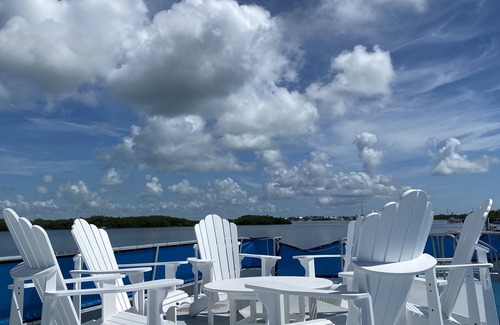 Houseboat offers a rooftop deck for stunning views of the sunrise and sunset. | Boat Rental in Tavernier