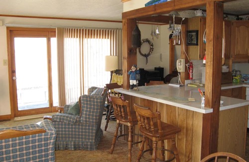 Inside, the space features a bright, open floor plan with sliders in every room that lead out to the deck, filling the apartment with natural light and easy indoor-outdoor flow. The well-equipped kitchen opens to a dining area that seats up to six, and the comfortable living room is perfect for winding down with cable TV and a DVD player.