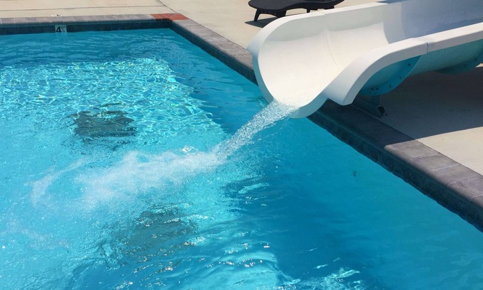 An indoor pool, a children's pool, and a seasonal outdoor pool are on site. Other recreational amenities include a waterslide.