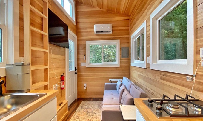 A new tiny house on several private acres with a stocked pond perfect for fishing or picnic fun. Sit by the fire pit and roast marshmallows or play a round of horseshoes (country cornhole) or picnic by the pond when you're not enjoying hiking in the Cherokee National Forest or rafting on the Ocoee River! For gun enthusiasts there is a shooting range nearby along with several great restaurants and nightlife spots.
