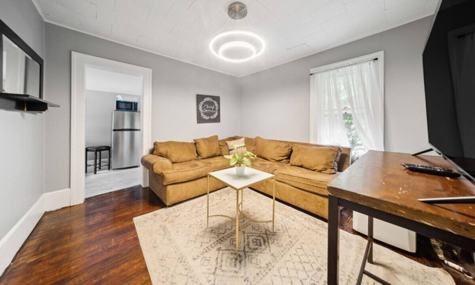 This quaint century Victorian home has a clean, fully furnished, smoke-free (no smokers or smoking) upstairs apartment unit available. There are 4 bedrooms, kitchen, living room, and a front sitting area with large 50" smart tv. The bathroom is at the back of the house with a large soaker jacuzzi tub and overhead shower.