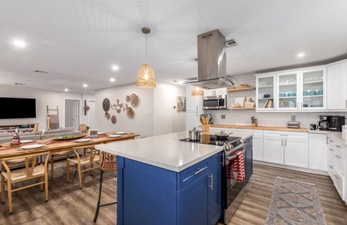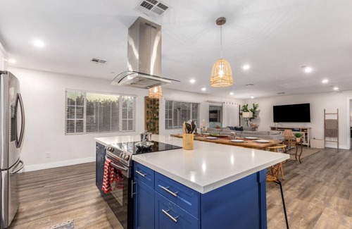 Enjoy a spacious retreat in Scottsdale, close to Old Town`s vibrant shops, dining, and nightlife. This 4-bedroom home features a hot tub, covered patio, outdoor fire pit, and BBQ for ultimate relaxation. With a fully equipped kitchen, dedicated workspace, and smart TVs in every room, it’s perfect for work or play. Located near top attractions like Camelback Mountain, Scottsdale Fashion Square, and golf courses, it’s your ideal base for exploring and unwinding.