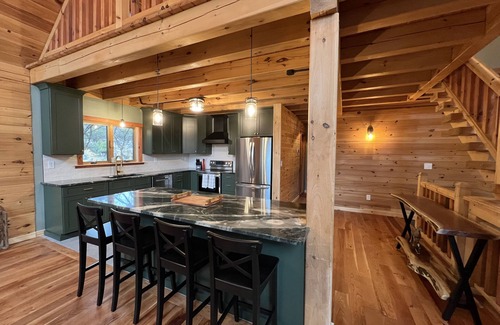 This home has traditional knotty pine throughout, with modern touches in all of the rooms. The home features vaulted ceilings, a stately fireplace, and an open concept for friends and family to gather. The entire kitchen is brand new, from the island to the appliances. The entire home was renovated in the Fall of 2023.