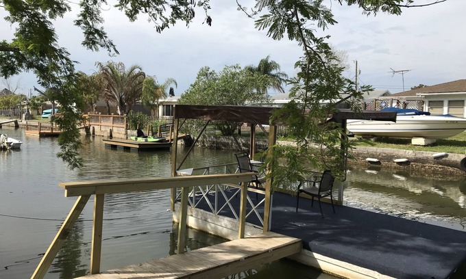 This is a great waterfront Gulf getaway house. You would not see this type getaway house very often. Your experience will be unforgettable. Gulf access on a canal with dock. Fenced yard. Full equipped Kitchen with stainless steel appliances and 60" smart HDTV with Netflix, super high speed Fiber internet access with WiFi.