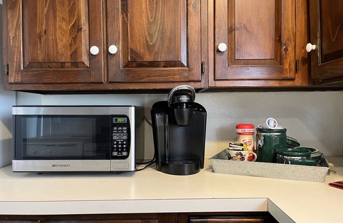 Kitchen: we've provided a stocked kitchen with most things that you should need for basic cooking. Keurig coffee with a few pods provided to get you started! Note that the dishwasher is a "portable" dishwasher and requires moving it over to the sink faucet to run (instructions provided in the house).