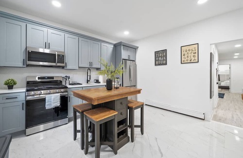 Explore this NYC suburb with this modern, renovated apartment! We're centrally located: Cape Liberty Cruise Port (7 mins), Newark Airport (15 mins), MetLife Stadium (20 mins), and Manhattan (25 mins or 15 without traffic).