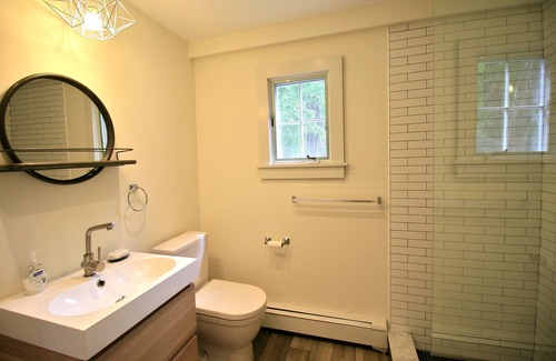 The loft has been fully renovated with a modern bath including an extra large walk-in shower.