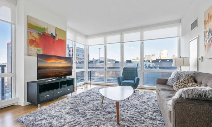 This artsy high-rise has everything you need for a stylish and modern life in Manhattan including spacious living areas, designer finishes and a wonderful array of amenities and services at your disposal. These stunning residences are thoughtfully designed to become your personal haven in the city that never sleeps. Enjoy the killer views from your living room infused with natural light, feel like a chef in the Italian-crafted kitchen and take advantage of the ample closet-space and meander around the nearby boutiques. Our bottomless upscale on-site amenities include two zero-edge pools, a regulation-sized basketball court and 15,500 square feet of fitness space that will make you fall in love with your new home even more. Disconnect from the hustle and bustle of the city in the private landscaped park and sundeck or catch up with our yoga classes. Settled in a dynamic neighborhood with a wide variety of high-class shopping and dining next to Broadway, this community also features other services including 24hr doorman, concierge, valet, and shuttle bus. With such great location, amenities, and services there is no better place than this for your next stay in New York City!