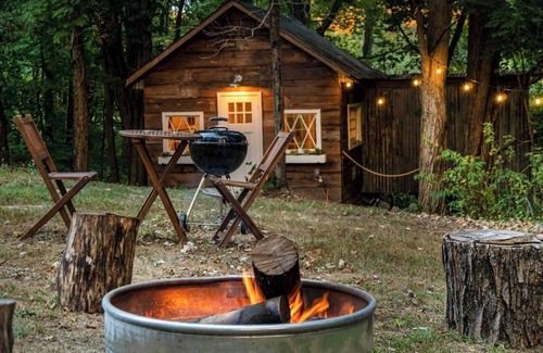 We provide a Keurig coffee maker with pods and sugar, mini fridge, basic utensils, a small grill, fire starting supplies (wood, lighter and fire-starters), bug spray, bubble bath, luxury towels and toiletries. Please note there is no cooking stove or dishwasher.