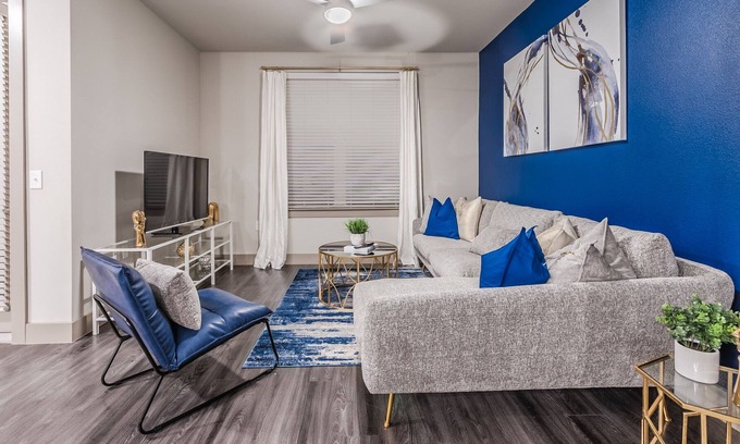 🔹Hue of Blue🔹: King Bed👑 |Fast WiFi| + more! has 2 Bedrooms , 2 Bathrooms, and max occupancy of 6 people. The minimum rental for this property is 1 nights, but this can change depending on the season you plan on staying. Previous guests have given good rated it, and VRBO labeled it a top-rated Apartment because of the excellent services rendered by the owner or manager of this Apartment, and has consistently provided great experiences for their guests. Most families or guests that use it recommend it to their friends and some of them are repeat guests. Apartment has a friendly neighborhood, and the Farmers Branch has interesting places to visit. If you want to learn more about the Apartment in Farmers Branch, such as places to visit and things to do nearby, you can check below to learn more.