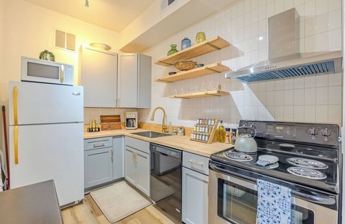 Experience the charm and elegance of this French Chic 1-bedroom apartment in the heart of Frederick. The stylish bedroom boasts a plush king bed, perfect for a restful night’s sleep. Thoughtfully designed with vintage-inspired furnishings and modern comforts, the space features high-speed WiFi, a hair dryer, and a convenient in-unit washer. Whether you’re here for a weekend getaway or an extended stay, this inviting apartment offers both comfort and sophistication. We can’t wait to host you and make your time in Frederick unforgettable.