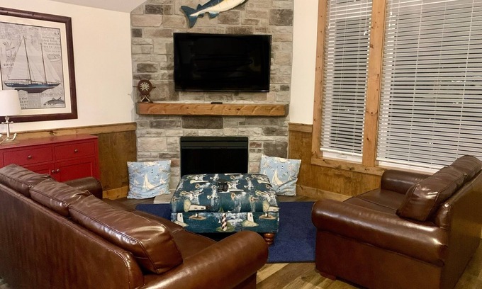 Hosting a family get-together? At Stormy Point Village this four bedroom cottage is perfect for you! It features three bathrooms (one on each level) of the Cape Cod inspired cottage. There is a family rec room and two patios for plenty of hang-out space. The downstairs bedroom is pirate themed, perfect for the little buccaneers. Each bedroom features pillow-top beds & blackout drapes. The living room includes a fireplace, while the kitchen is fully equipped - including stove top. The cottage also hosts a private spa tub as well as washer & dryer units. No matter what the occasion Stormy Point Village is the perfect fit to be your home away from home.