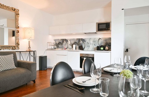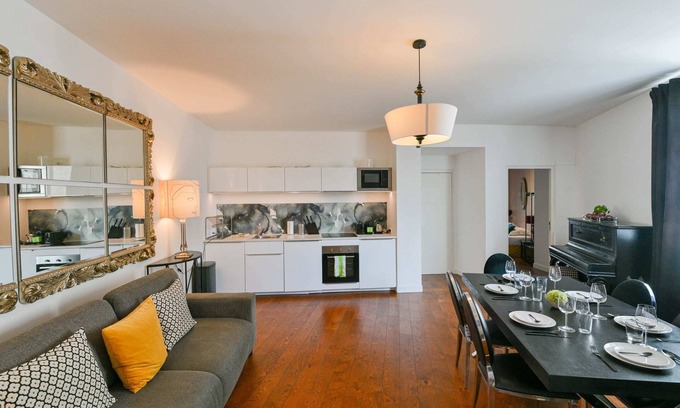 Our local interior designer has combined contemporary style and classic French décor. A very large living area open to the kitchen and dinning table, great for in house meals after a long day sight seeing. Find scenic views over Montmartre from all windows.