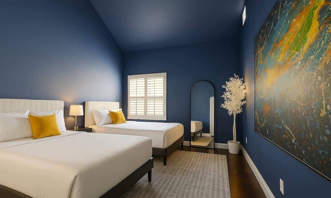 You will have the most memorable stay in Dallas here at this amazingly Orange home. From the spacious ceilings to the amenities, you can unwind, share memories, express yourself, inspire yourself here at our home. This home has a king bed on the second floor and four queen beds on the top floor. We just recently added a piano in the living room as well.