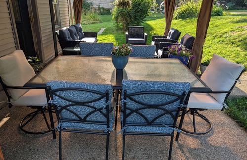 Discover comfort and elegance in Mansfield in an spacious 4 bedroom Victorian, featuring 1 king bed, 2 queen beds, full bed. Perfect for a group or a family. Enjoy a morning coffee in the 20' gazebo with comfortable outdoor furniture, evening hangout time grilling steaks while the little ones play in the kids' pool. Reignite the magic of togetherness.