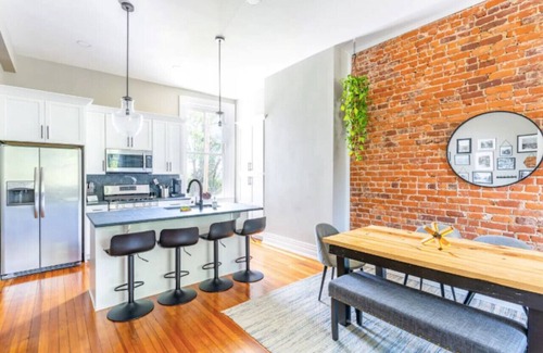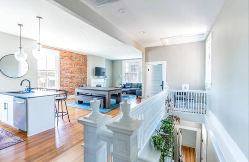Welcome to the Dorchester- this newly renovated building has one upstairs apartment and one downstairs apartment, and this is a combined listing for both apartments. It’s perfect for two families traveling together, wedding parties that want bridesmaids and groomsmen to sleep separately, or any other groups that could benefit from having two kitchens and two living rooms in one shared, private building. Located in the heart of downtown LYH!