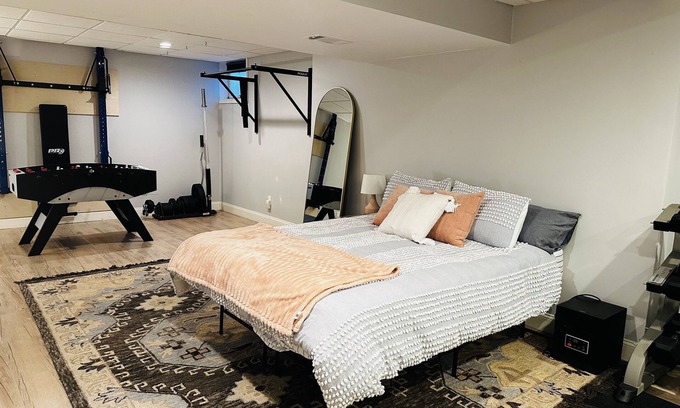 Beautiful quiet neighborhood, less than 5 miles to Beaver Stadium and close to bus routes for game day shuttles. Private entrance to 1200 sq ft full basement. Includes kitchenette, beautiful new bathroom, workout area with Peloton and LOTS of room for friends and family to spread out. (King Size Bed, 2 Queens, and additional options upon request) Enjoy dining and relaxing on the back patio with fire table and grill. We're happy to provide basic groceries/pantry items upon request. Additional air mattresses also available upon request.