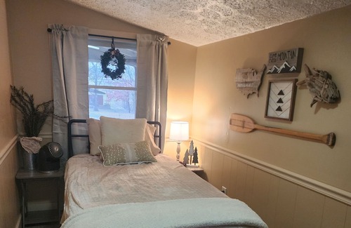 Humboldt Guest House is a 1900 constructed Craftsman Style Home with all the charm and comforts you could need for your stay. We welcome Military Families with open arms or Guests visiting our Wonderful Town! We have a beautiful sunroom to enjoy your morning coffee (supplies and coffee are provided) or play a board game or read a book from our collection. We are conveniently located next to the Community Park and the local favorite Burger Hut offering classic burgers, shakes and amazing BBQ. We have plenty of parking. Pets are always welcome! Great option for local lodging if you are coming to town for an event at the New Event Venue Humboldt 1854. Our town has two other restaurants, a coffee shop, local bakery, three antique stores, hunting supply store, local hardware store that offers so much more. Our community park is one of the best in the Area with a paved walking trail that you can get to within a 3-5 min walk from the House, a public fishing pond, multiple play areas, baseball fields, soccer fields and two covered pavilions to enjoy in the Park. We also have a Public Pool that is open from Memorial Day to Labor Day only. You won't find rideshare, food delivery service or other public transportation options, but we have a local Grocery Store which is just a 5 min walk from the Guest House. You will find a welcoming town that wants you to enjoy everything it has to offer. We are just a short drive (20 mins) from the Front Gate of Fort Leonard Wood. and are a Very Military Supporting Community. We are a short 45 min drive to the Beautiful Lake of the Ozarks. We have a beautiful memorial park located down town which is walking distance to the Brew Coffee Shop, Frisco Stop Cafe or Oakhaus Bakery. This park features a beautiful gazebo and a Historic Frisco Railroad Company Caboose. We also have a City Museum where you can learn some pretty cool facts about our Town. Our Guest House has Four bedrooms and One Bath. Two of the bedrooms and Office are located upstairs and all other spaces are located on the main level. We hope you will choose our Town to come stay awhile, enjoy the peaceful front enclosed porch of our Guest House, and take some time to catch up with Family and Friends. #comestayinourtown