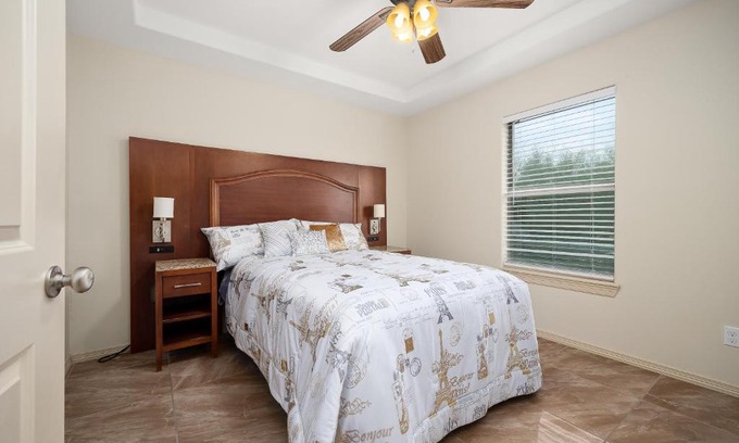 Offering a garden, Hummingbird Haven 3 with Patio offers accommodations in Pharr. This apartment features free private parking, full-day security, and free Wifi. Featuring a patio and garden views, the spacious apartment includes 2 bedrooms, a living room, flat-screen TV, an equipped kitchen, and 2 bathrooms with a hot tub and a bath. Towels and bed linen are available in the apartment. For added privacy, the accommodation features a private entrance. The nearest airport is McAllen-Miller International Airport, 5 miles from the apartment.
