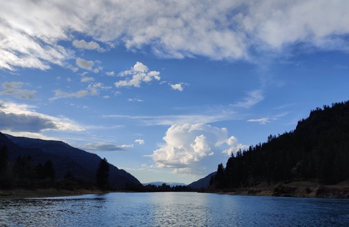 Peace of Paradise is what you'll find in 1 of our 5 quaint and cozy Glamping tents along the river, overlooking the spectacular river views! It's surreal beauty from every angle, tranquil peace and calm! A short walk takes you to the rivers edge where Bass and Pike are a delight to every fisherman! Your experience includes, but is not limited to, an open fire pit for cooking, table and chairs for eating, drinking water, dishwater, river and mountain views from your site, lamps, phone charger port, shared shower house and clean porta potties. Kayaking, paddle boarding, swimming and relaxing are a few of the charming delights just out your front door. Can't pull yourself away from the glacier blue river views, the charming old fruit trees in the lawn and the cozy campfire at night! Experiencing the western trains rumbling down the valley is a highlight to many campers. (There are no Railroad crossings or air horns near our property.) Just a short 2 miles down the road, a mineral soak awaits you at Quinn's Hot Springs Resort. You can also enjoy a cute, best in the west ice cream shop ten minutes away in the town of Wild Horse Plains, a darling old town which also hosts antique shops, grocery, hardware, hospital and so much more! The old and fascinating town of Thompson Falls and a local Bison range, are less than an hrs drive away!