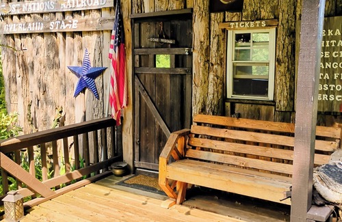 Hunting Cabin Rustic Handcrafted primitive sits in our unique rustic Cowboy Town is located in Frontier. Hunting Cabin Rustic Handcrafted primitive sits in our unique rustic Cowboy Town provides accommodation, featuring Bedding/Linens, Fireplace/Heating, Child Friendly, among other amenities. This Cabin features Bedding/Linens, Fireplace/Heating, Child Friendly, to make your stay a comfortable one.