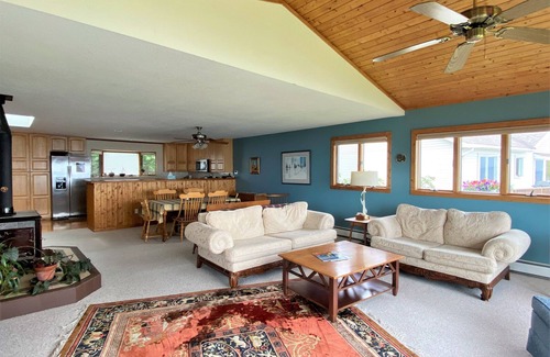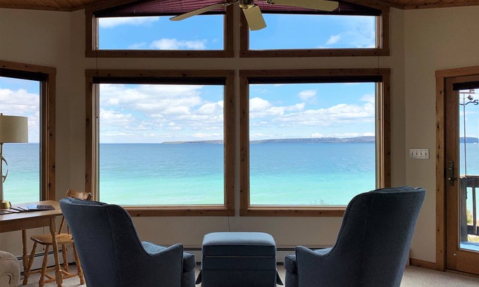 This beautiful 2.5 BR 2 BA ranch home is directly on Lake Huron overlooking Mackinac Island and the Straits of Mackinac shipping channel. The main level features 2 Bedrooms and a bath w Jacuzzi tub. a full kitchen, large living/dining combo and walk-out deck. The lower level suite features a full size bed and plenty of room and walkout to patio and yard. Walk to parks, hiking trails, coast guard and Lutheran Church, 1/2 mi. to downtown area. Some amenities include:Central AC, cable TV, Wi-Fi, Bluetooth Sound System, Alexa, BBQ Gas Grill, and 2 kayaks! No smoking and no pets on the property please.