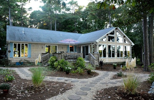 Offering a HOMEY rental on the gorgeous Chesapeake Bay - Leadenham Creek, Bozman, MD. The Gnome Home is nestled on 3 1/2 acres with 200 feet waterfront, there are exceptionally beautiful views & wildlife. A gorgeous sun room, with 3 walls of windows, overlooks the water. You may catch a view of our abundant wildlife & waterfowl - the bald eagles soaring, blue herons fishing along the shore, osprey flying &/or nesting on our platform to the right of the dock, native waterfowl, &/or deer passing through the property. If you are lucky, you might observe the river otters. Regardless of what you are seeking, you will find comfort, serenity & relaxation in our quiet home.