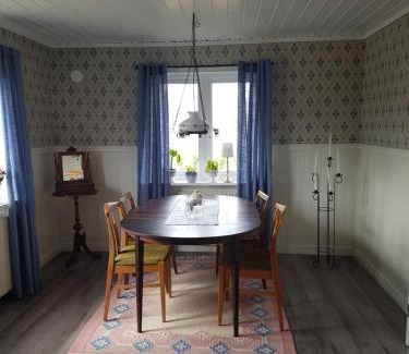 Providing a garden, Hus på landet nära sjö features accommodations in Berga. This property offers access to a patio, free private parking, and free Wifi. Featuring a terrace with garden views, this villa also includes a flat-screen TV, a well-equipped kitchen with a dishwasher, an oven, and a microwave, as well as 1 bathroom with a walk-in shower. The property has an outdoor dining area. Oskarshamn Train Station is 15 miles from the villa. Kalmar Airport is 45 miles from the property.