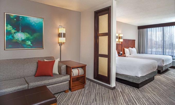 Hyatt Place Cincinnati/Blue Ash offers 125 accommodations with MP3 docking stations and DVD players. Accommodations offer separate sitting areas. Beds feature premium bedding. 42-inch flat-screen televisions come with premium digital channels, pay movies, and Netflix. Refrigerators and coffee/tea makers are provided. Rooms have partially open bathrooms. Bathrooms include shower/tub combinations, designer toiletries, and hair dryers.
