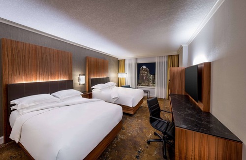 Hyatt Regency Calgary offers 355 air-conditioned accommodations with laptop-compatible safes and coffee/tea makers. Beds feature premium bedding. 65-inch flat-screen televisions come with premium cable channels and pay movies. Bathrooms include designer toiletries, complimentary toiletries, and hair dryers.