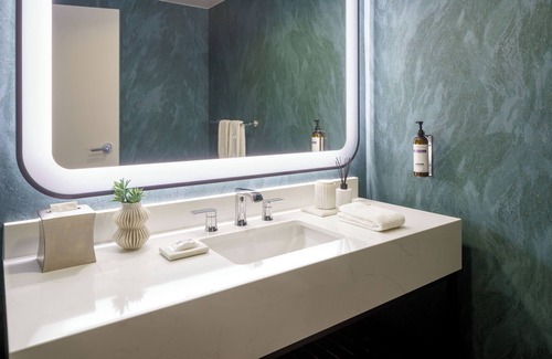 An indoor pool and a hot tub are on site. Other recreational amenities include a 24-hour health club.