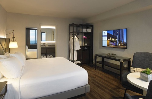Pet-friendly Rochester hotel connected to the convention center, steps from Rochester Riverside Convention Center