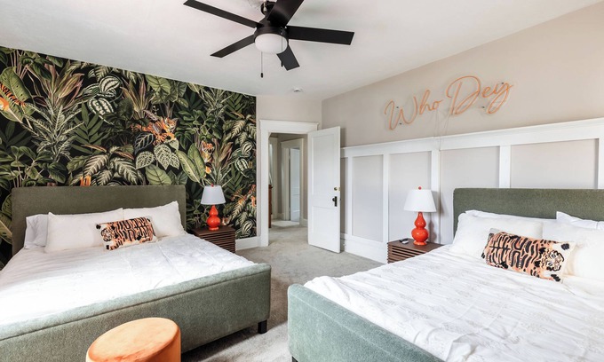 (2) Bengals Who-Dey Room with 2 Queens, Large TV