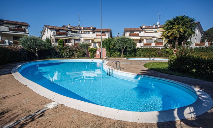 Questo alloggio si trova al 2 secondo ed ultimo piano del residence. È dotato di ascensore. Dispone di un ampio balcone vista piscina con un grande tavolo su cui è possibile pranzare all'aperto. Disponibile anche un seggiolino per bambini 1-3 anni da posizionare sulla sedia.