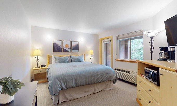 Experience Leavenworth from the comfort of this fully remodeled downtown studio-style condo. You'll be treated to a large jetted tub, and a patio. Located at the popular Icicle Village Resort, you'll have access to shared amenities like two pools and hot tubs, miniature golf, a basketball court, game room and more. This condo can also be rented along with the adjoining condo, Aspen Suites 505 & 506.
