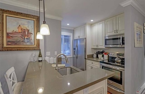 The living room has a sofa sleeper (with a tempur-pedic pad that can be added for additional comfort) for the kids or third person. The well stocked kitchen has a bar with barstools and all updated appliances. There is one assigned parking spot in front of the unit. There is also an outdoor space available to use by the front door of the unit's building that offers a picnic table, umbrella and lovely landscaping. Feel free to use at your leisure and enjoy!