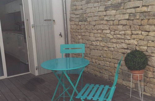It is ideally placed to be calm, while being 5 minutes by bike (rhetais means of transport par excellence) from shops, around alleys flowered with hollyhocks and 2 never crowded beaches crossing the vineyards.
