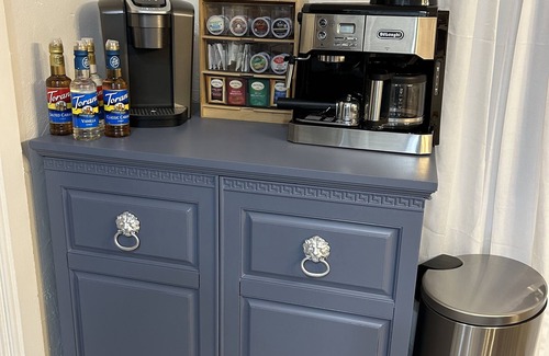 Free high speed internet and basic cable are provided. We also have an assortment of teas and coffees for your enjoyment as well as a DeLonghi coffee system for our coffee connoisseurs, along with a coffee grinder to make the most perfect cup of Joe. No worries, if a more simple coffee or tea is preferred .. a Keurig is also available. We offer a keyless entry system into our home for easy access to come and go as you please. For your convenience, we offer 2 complimentary parking spaces on the 1st floor of the covered parking garage, literally just a few steps away from the house.