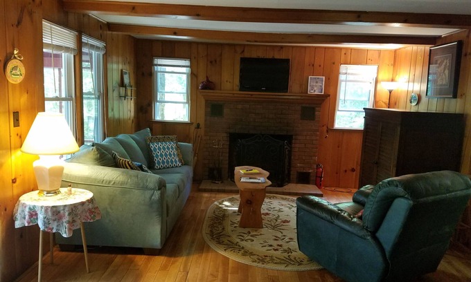 The cottage has a screened-in-porch, two bedrooms with a queen bed each, and the living-room has a pull-out sofa. There is plenty of outdoor space, with a tent friendly yard for fun family time!, and it is located in a quiet and private location.