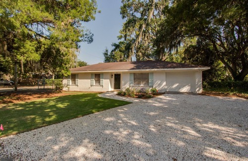 This light & bright little gem is located just steps to the May River & Oyster factory Park that offers a boat ramp, public dock & picnic area overlooking the river. You can even catch a glimpse of the river from the rooms along the front of the house. We just completed a major renovation & are offering a comfortable stay for up to 4 guests with a private office. Enjoy cooking meals in the spacious kitchen & relaxing in the backyard. We are located one street over from Calhoun Street which offers numerous galleries, shops & restaurants.