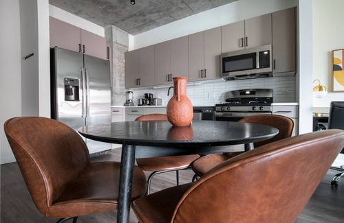 This furnished apartment is located in River North, Chicago’s most trendy neighborhood. The bridges combined with the river walk offer incredible views. Nearby on Michigan Avenue is the city’s premier shopping area. One of the neighborhood’s biggest assets is the walk-to-work appeal. Young professionals, who live and work in the area, can quickly get to the office in the morning and just as easily enjoy an after-work drink, as the area is considered a premier entertainment center. Don’t miss a stroll on Kinzie and Hubbard streets. Merchandise Mart, the iconic building with showrooms, shops, and office space, is only a 5 minute walk. The Loop is just across the bridge and is about 5 minute walk.