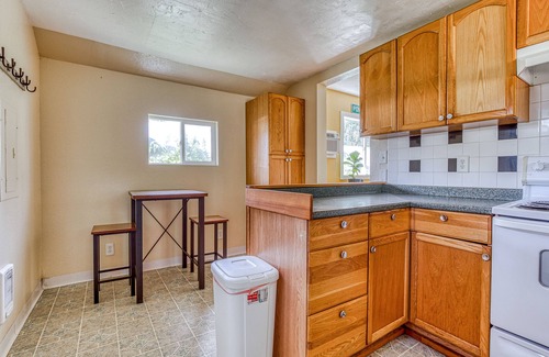 It's all about the location of this one-bedroom cottage, with White Salmon just up the hill, Hood River across the bridge, and the many wonders of the Gorge, Mt. Hood, and Mt. Adams in every direction. Spend your days in the great outdoors and be greeted back at home by a small front deck with a bistro table that's ideal for cold drinks, card games, and stories of your adventures.