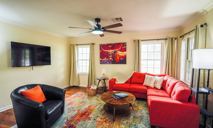 Kicks on Route 66 – Bright, Fun, Family-Friendly with 5 Beds, Central-One mile to Expo Square.