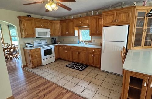 Your relaxing getaway awaits at this cozy 2-bedroom, 2-bathroom house. Nestled in a serene setting, this beautiful property offers all the comforts you need for a relaxing stay. With all of the amenities you need included! This property is close to Hamilton and Colgate University (19 minutes), Clinton and Hamilton College (32 minutes), Cooperstown and The Baseball Hall of Fame (42 minutes) and the Brookfield State Lands horse riding trails (9 minutes). This property boast a large yard with a fire pit (firewood supplied), a garage with two horse stalls, a view overlooking two ponds and plenty of parking. Inside you will find a single level home that has a open concept kitchen and living room. The house has two bedrooms, both with queen sized beds. There is a sofa in the living room that would be perfect for small folks to sleep on! With 2 full bathrooms, one of which is attached to a master bedroom, there's no shortage of privacy for your morning prep. In the back of the house you'll find a large dining room/office with a beautiful view of the woods and ponds behind the property. Pot, pans and utensils are included making food prep a breeze. Only miles from a general store that has a large selection of groceries, pizza, prepared food, beer, soda and dairy products, this is the perfect home base for your Upstate NY trip!